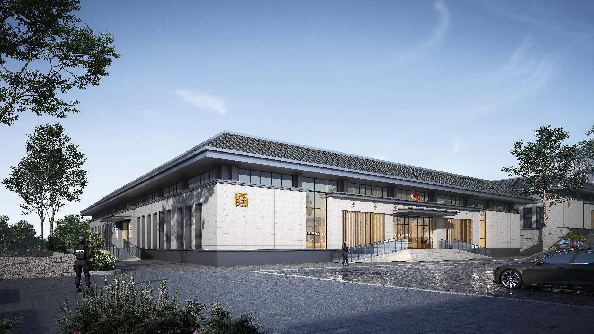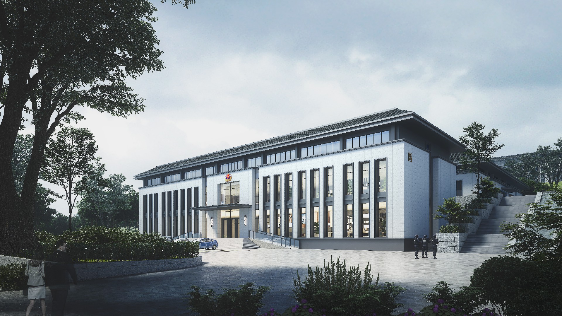 山東出入境邊防檢查總站輪訓大隊(南山)營區(qū)改造設計項目,總占地面職約 200 畝,對營區(qū)內(nèi)主要建筑及附屬設施進行功能改造,改造面積約總建筑面積約 1.6萬平方米。"一人之形象,國家之縮影;一人之舉止,民族之風貌。邊防檢查人員的形象和服務至關(guān)重大。本項目整體規(guī)劃格局莊重大氣,建筑效果協(xié)調(diào)統(tǒng)一,室內(nèi)裝飾溫馨舒適,充分考慮該地塊地形現(xiàn)狀,結(jié)合現(xiàn)有道路情況,通過設置多個臺地解決場地內(nèi)高差及功能分區(qū)的需求。本設計全面展現(xiàn)項目生態(tài)性、智能化。信息化、安全性等特色,倡導綠色健康、可持續(xù)發(fā)展的建筑模式。建筑整體設計大方、莊重.典雅,在設計細節(jié)上體現(xiàn)項目優(yōu)良品質(zhì)。